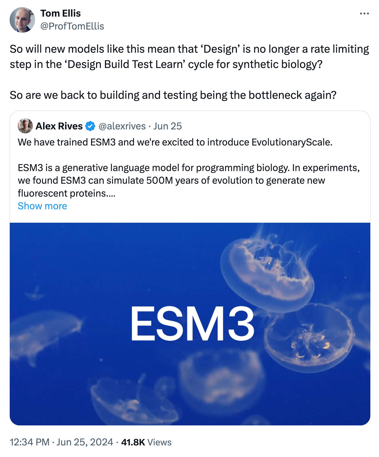 In the end then, I think what particularly caught my eye about ESM3 was when even one of my lecturers back from my university days took notice.