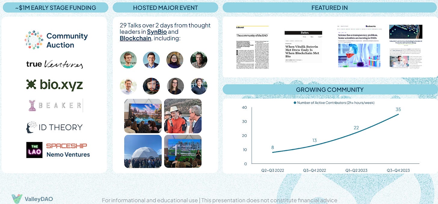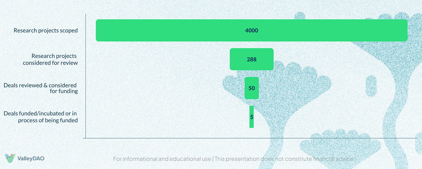 Our research funding activities will continue as we enter 2024. During Q4 of this year, we’ve scouted approximately 4000 research funding opportunities of which we’ve chosen 3 projects to consider for funding at Stanford, Harvard and University of Zaragoza. These projects are now being negotiated with their respective universities to get a funding deal for ValleyDAO. We’re excited to be rolling out the funding announcements for these projects in Q1-Q2 of 2024